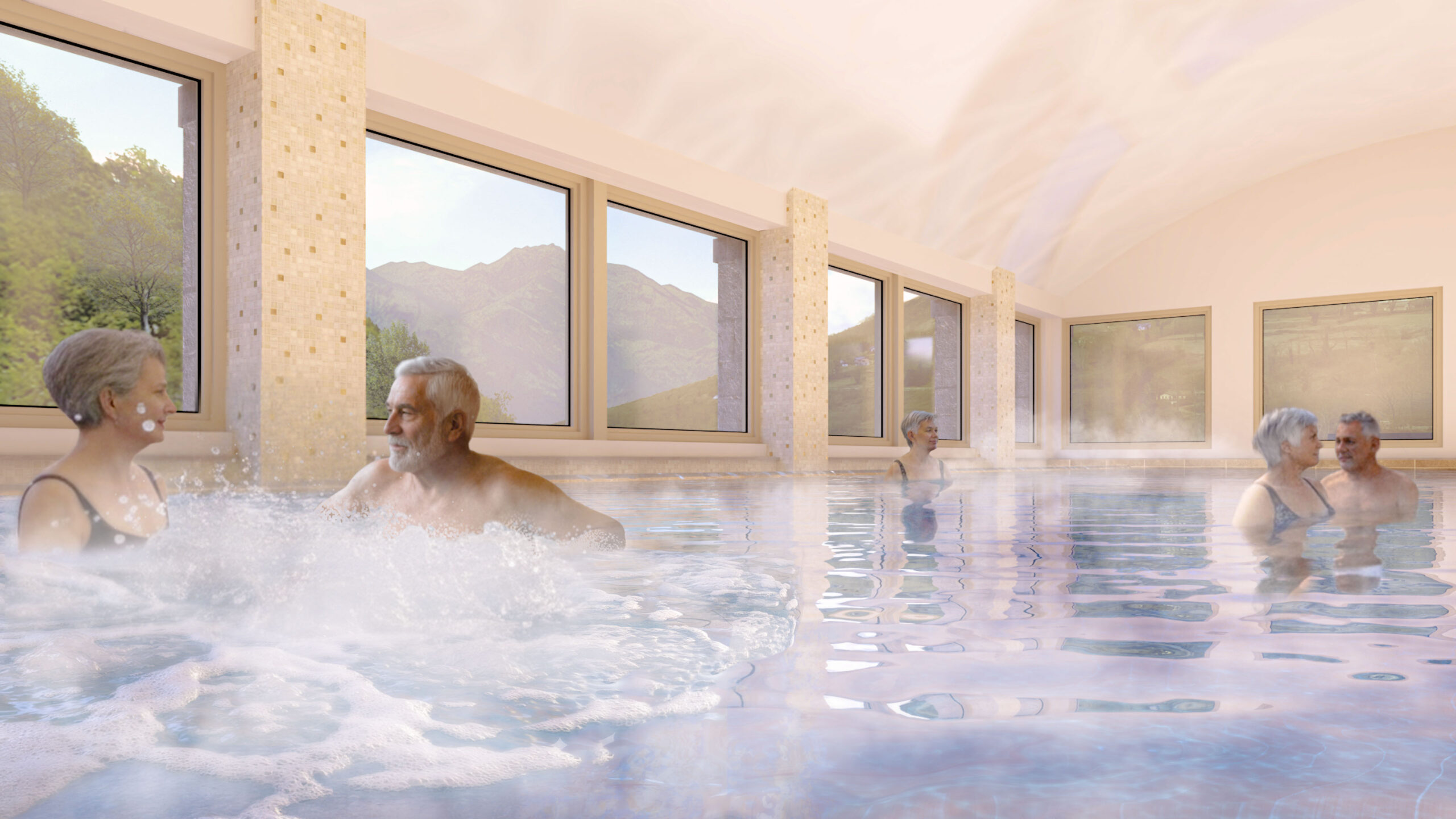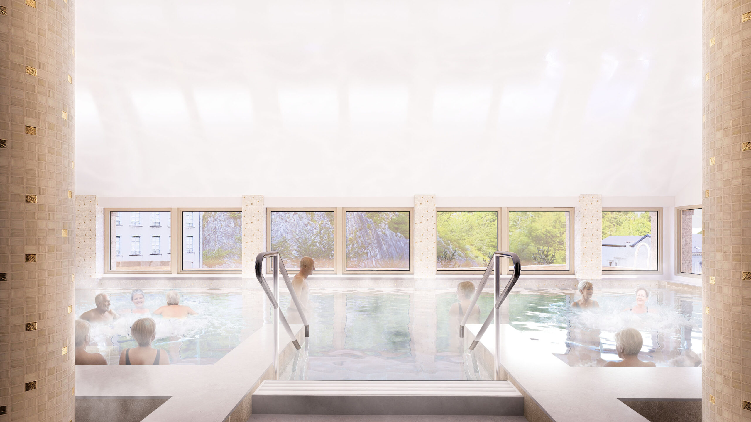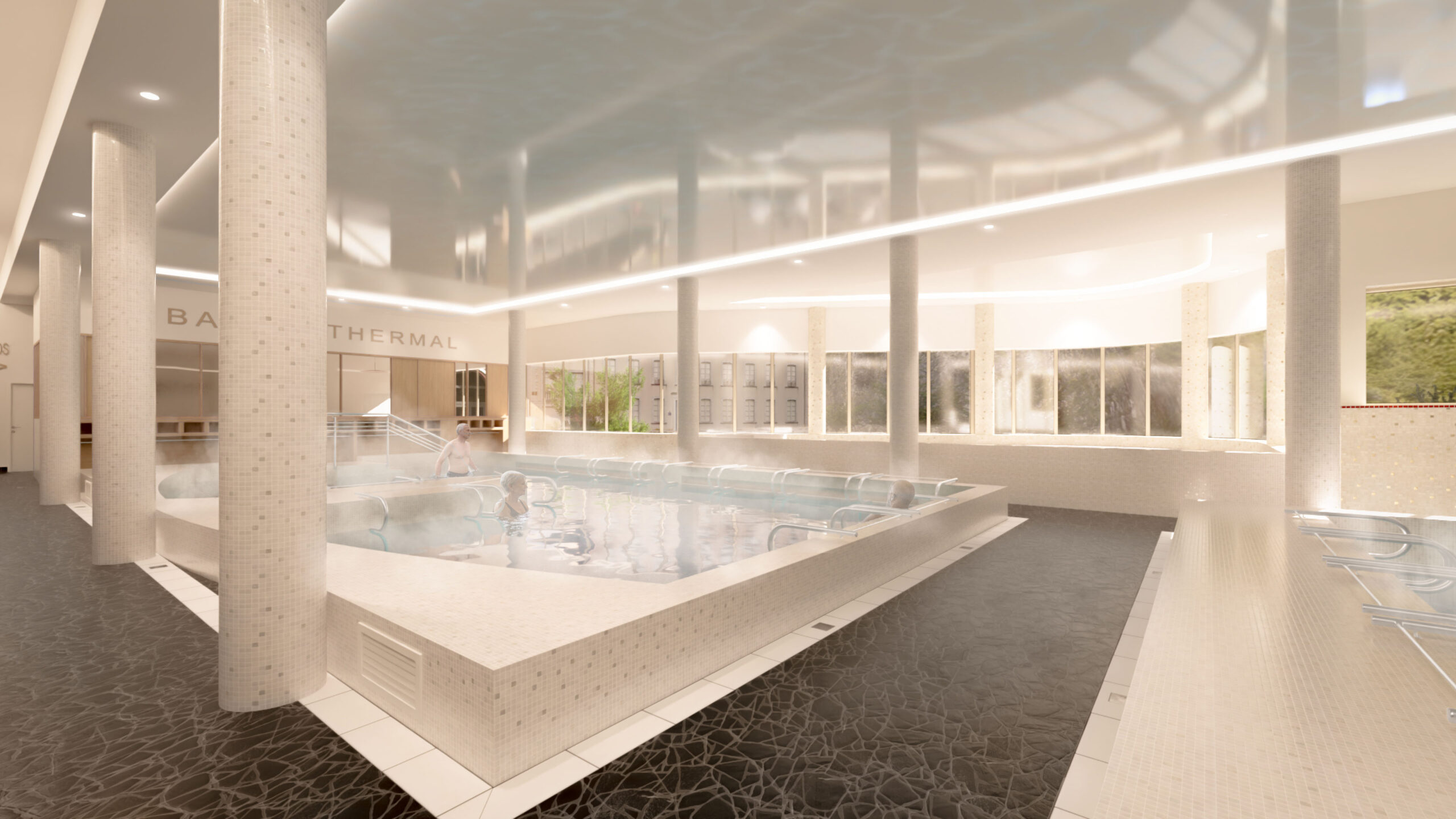 Mise en valeur de l’existant, réorganisation de l’ensemble, mise en place de nouvelles animations, d’un bassin intérieur/ extérieur pour créer une nouvelle image et une forte attractivité.
