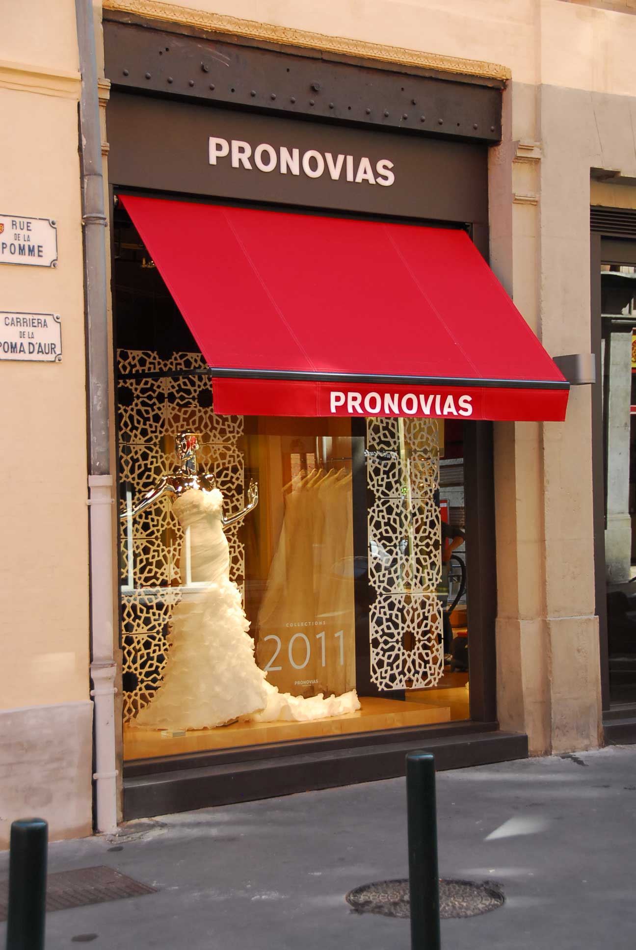 Exercice de style esthétique que d’aménager une boutique en hypercentre ville de Toulouse, ou comment être vu sans se montrer. Le design et les matériaux doivent être riches, accueillants, sans être tape à l’oeil. Pour mettre en valeur les robes blanches de mariées, le choix a été fait de bois chaleureux, de métal sombre et du verre en très grand format.